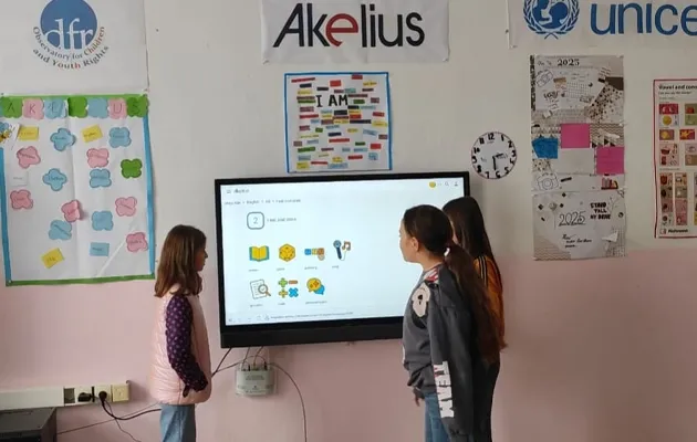 Students at “Demir Gashi” school in Peshkopi are learning English in a fun way through the #Akelius app, from Akelius Foundation, thanks to Observatori & #UNICEFAlbania! This blended learning model brings joy to classrooms in 24 institutions across #EducationForAll